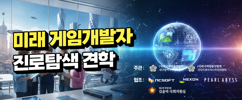 미래 4차 산업혁명 시대를 주도할 핵심산업인 게임 콘텐츠 분야의 전문가를 꿈꾸는 학생을 대상으로 특별한 진로 탐색 프로그램을 대구광역시학원연합회에서 준비하였습니다.